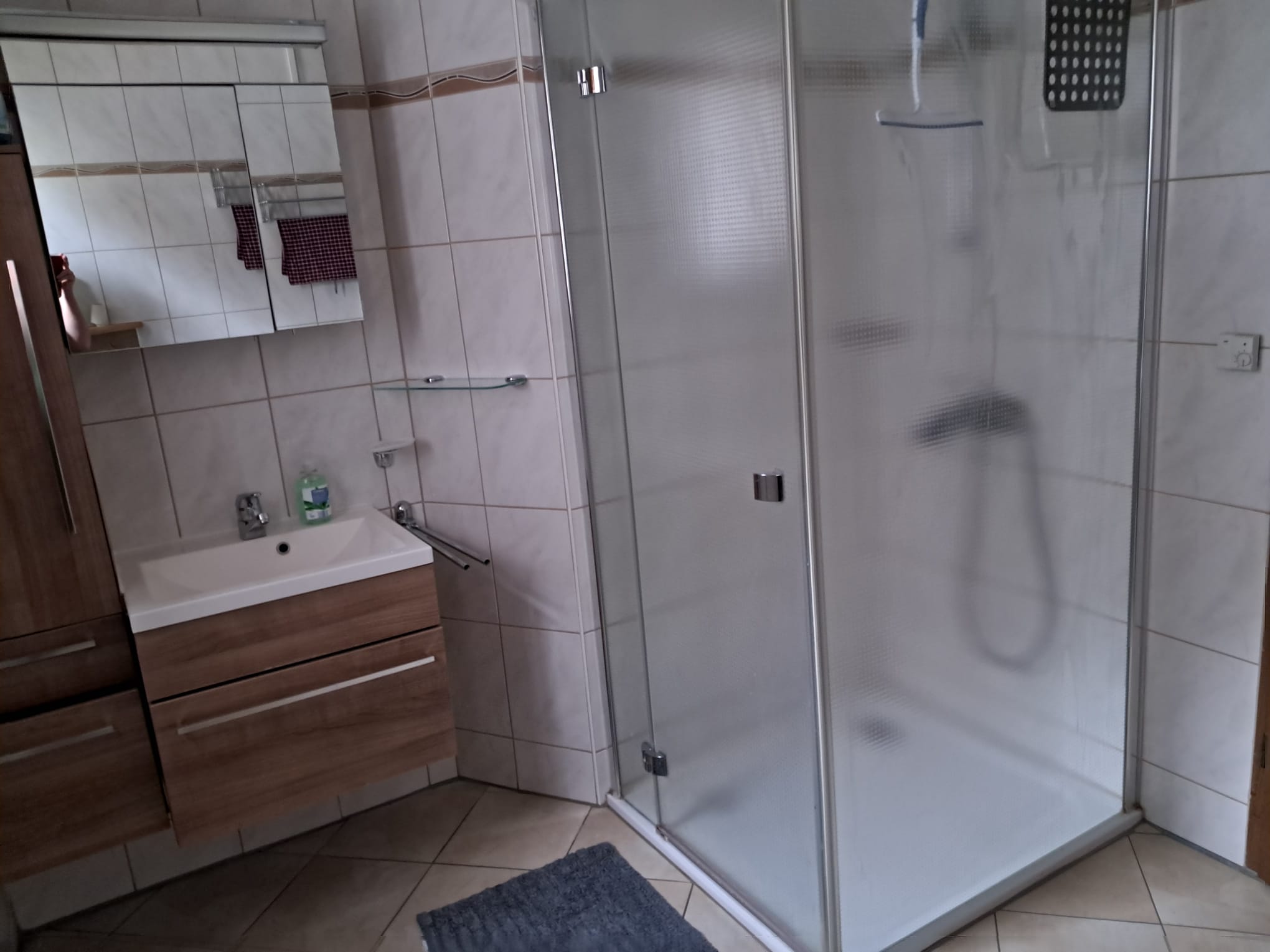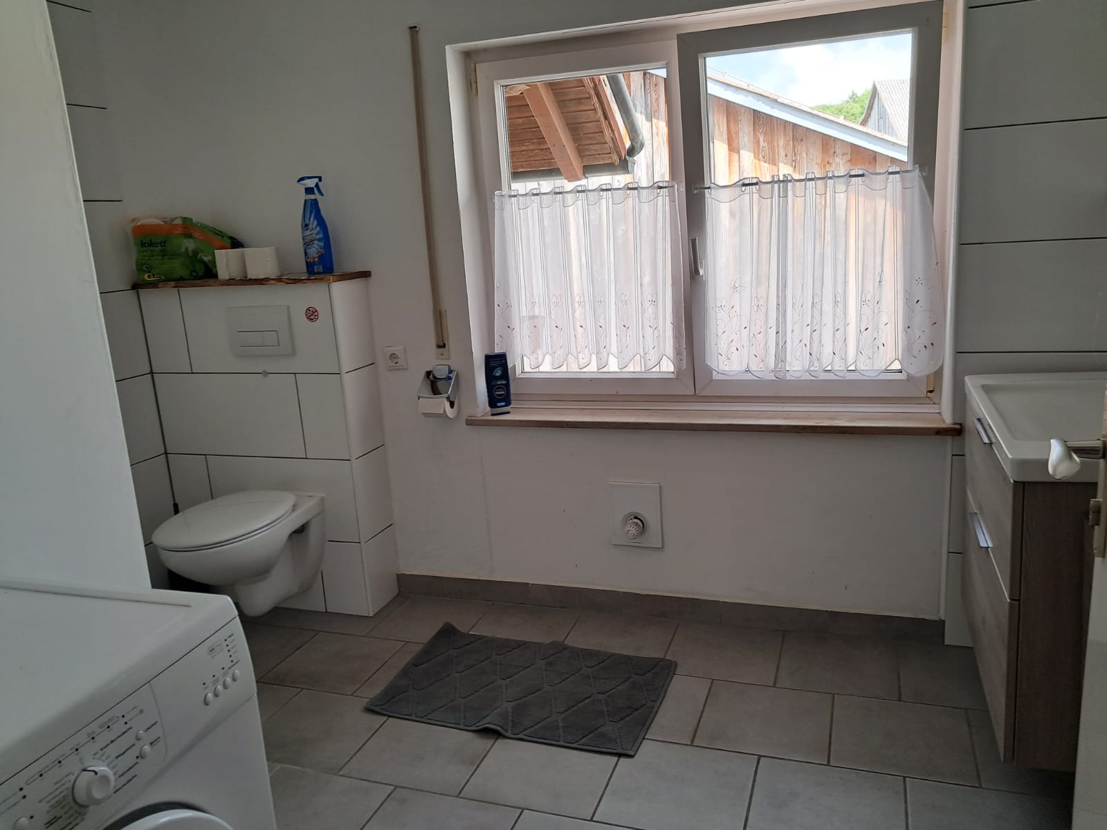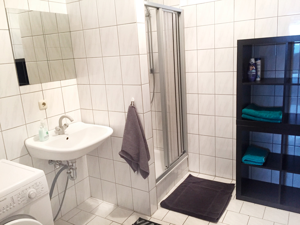 1x Badezimmer mit Dusche, WC, Waschmaschine