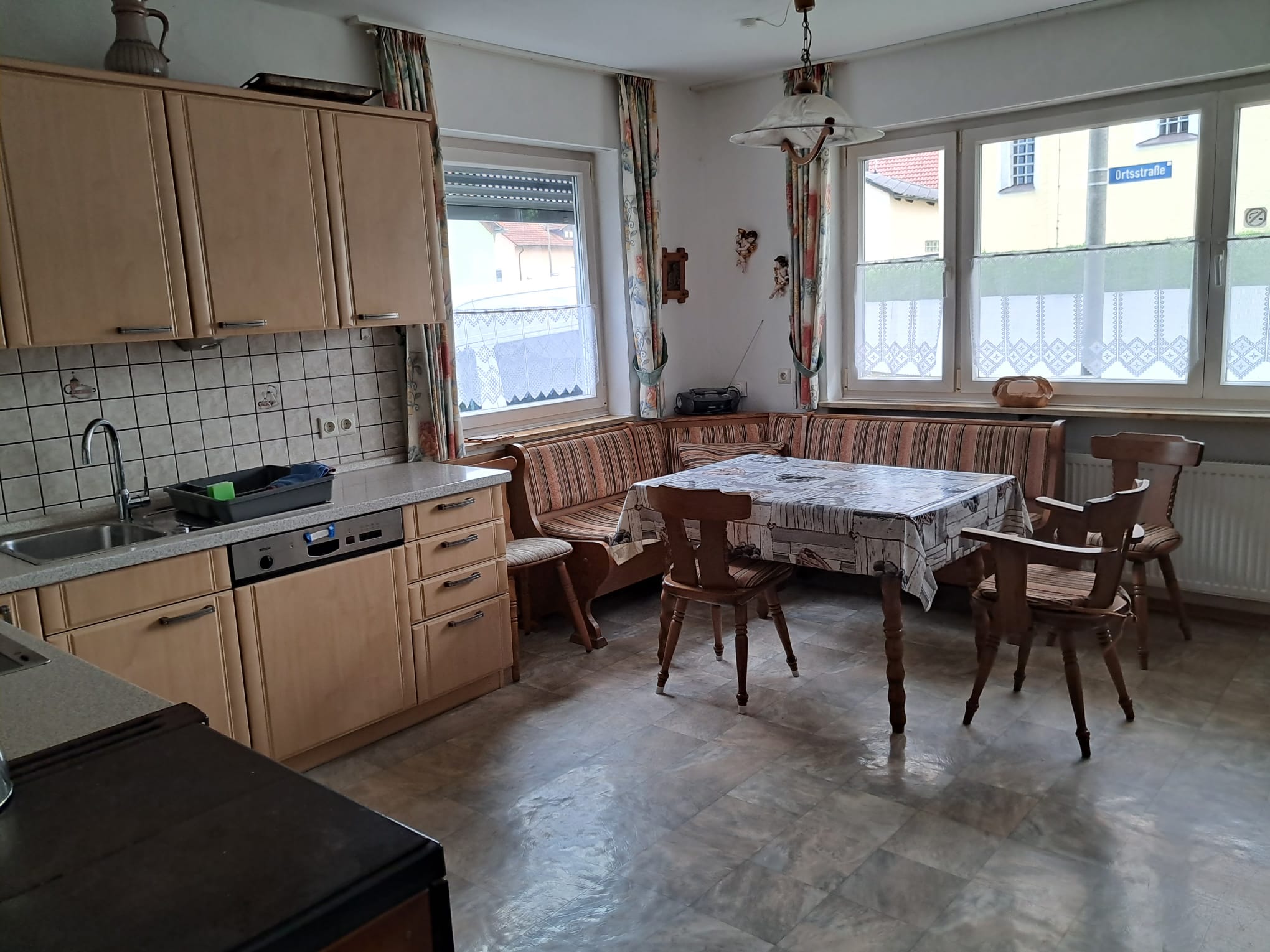 1x große Wohnküche mit E-Herd, Backofen
