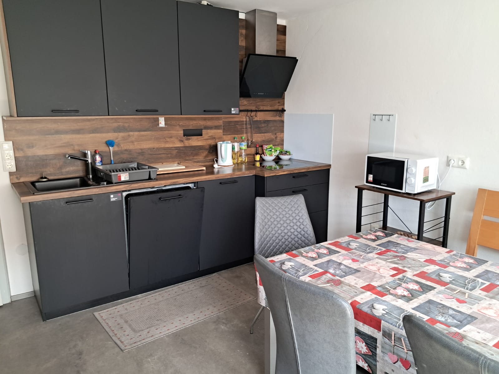 1x Wohnküche mit neuer Einbauküche inklusive Geschirrspüler, TV, Zugang zum Balkon